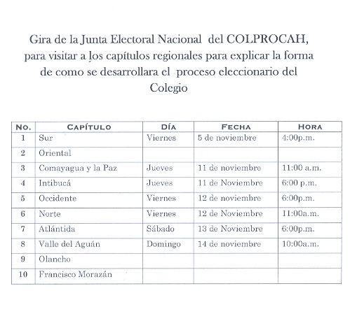 AVISO NOMBRAMIENTO JUNTA ELECTORAL NACIONAL DEL COLPROCAH